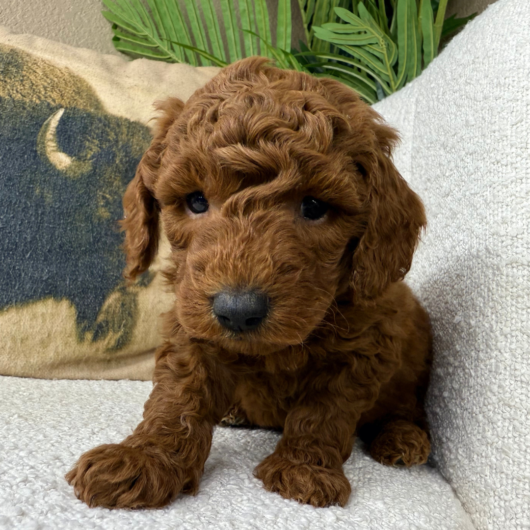 The Miniature, or Mini, Goldendoodle is an adorable 50/50 combination of the Golden Retriever and Miniature Poodle. These sweet-as-can-be and playful pups are the quintessential family dog. They are very smart and sociable and thrive in homes where they can spend lots of time with their humans or other pets, cuddling, playing, and learning new tricks.Β