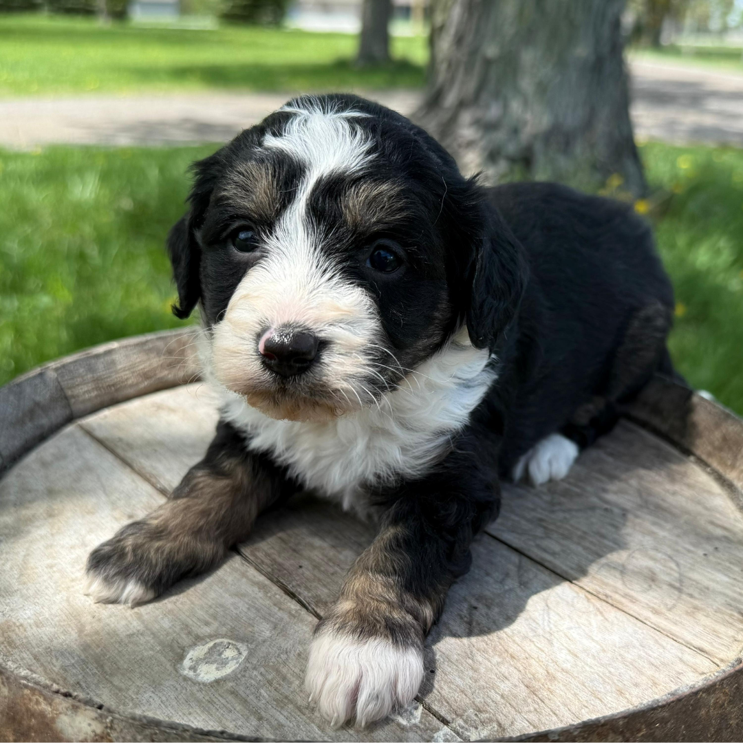 Micro Bernedoodles are the wondrous things that happen when an adorable Mini Bernedoodle mama breeds with a Miniature Poodle papa. This makes them a F1B cross, or 75% Miniature Poodle and 25% Bernese Mountain Dog.