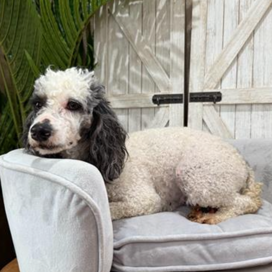 Jennywren is a stunning mama Poodle with a rare and eye-catching parti blue merle coat that truly sets her apart. Her beautifully balanced markings highlight her elegant poodle structure, while her intelligent, soulful eyes reflect her gentle and nurturing nature. As a mama dog, Jennywren is attentive, calm, and deeply devoted, embodying the best traits of the Poodle breedβintelligence, grace, and affection. Her unique coloring paired with her loving temperament makes Jennywren not only a remarkable mother but also an exceptional example of beauty and quality.