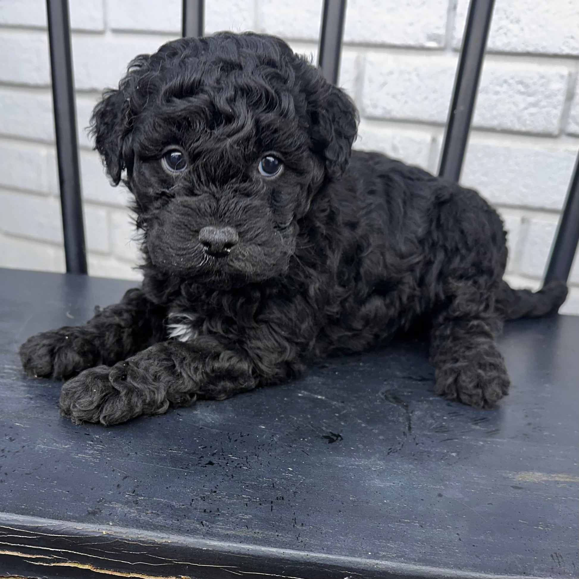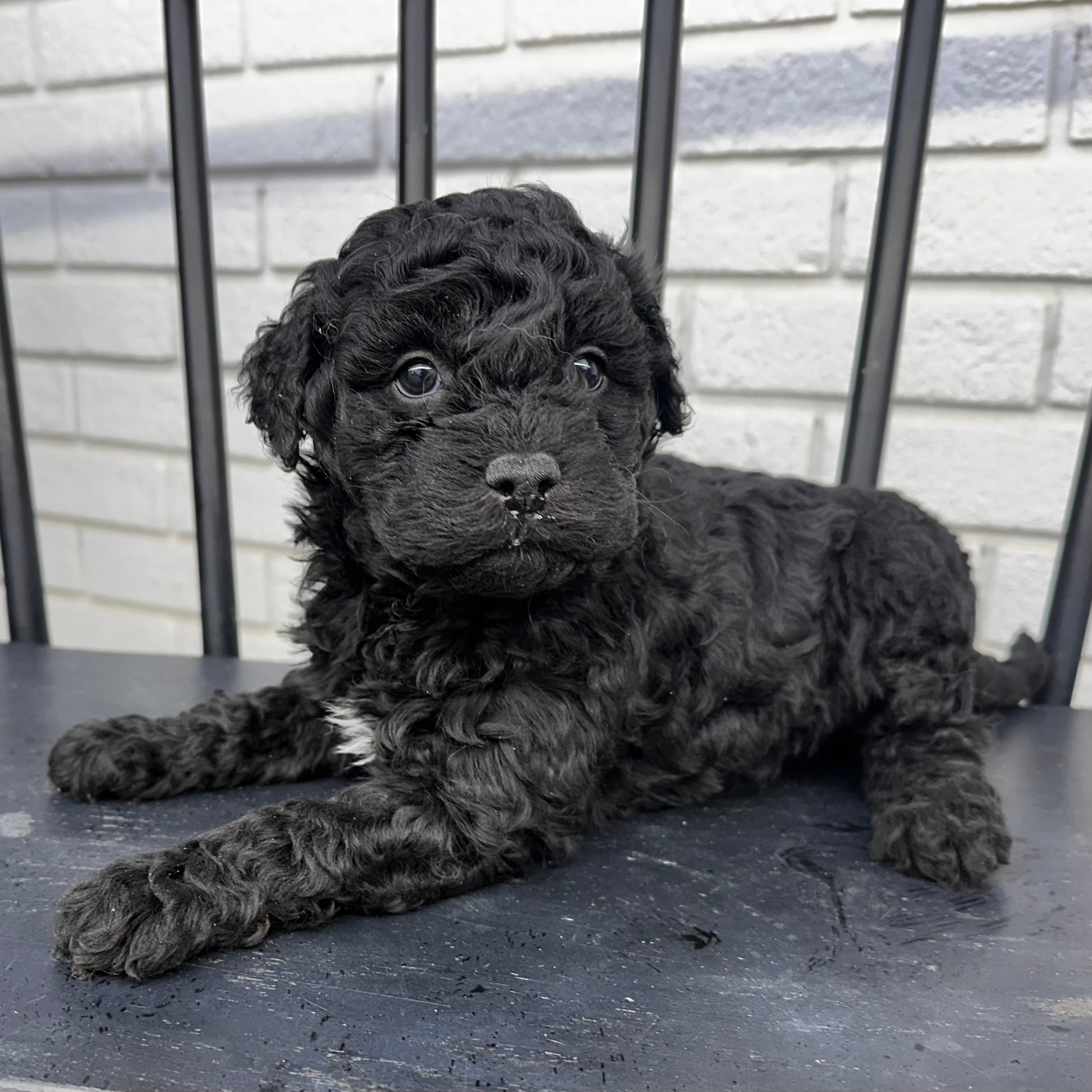 Astro is our handsome male Micro Goldendoodle with a sleek, jet-black coat that gives him a striking and timeless look. His rich coloring highlights his expressive eyes and playful personality, making him a true standout. Confident, curious, and full of life, Astro has a fun-loving spirit balanced by a sweet and affectionate nature.Β He enjoys playtime, exploring his surroundings, and engaging with his people, but he also loves quiet moments filled with cuddles and closeness. Astro is intelligent and attentive, always eager to learn and connect, which makes him a wonderful companion for both active and relaxed households. As a Micro Goldendoodle, Astro is the perfect size for modern living and travel. His low-shedding, hypoallergenic coat makes him an excellent choice for allergy-sensitive families. With his bold looks and loving heart, Astro is a shining little star ready to light up his forever home.