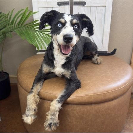 Crystal, our breathtaking Merle Mini Bernedoodle with mesmerizing blue eyes that sparkle as brightly as her personality. Her gorgeous blue merle coat is a stunning mix of silvery gray, black, and white, making her truly one of a kind. Crystal is as sweet as she is beautiful—affectionate, intelligent, and full of playful energy. She loves being around people and has a gentle, loving nature that melts hearts instantly. With her striking looks and charming personality, Crystal is the perfect Merle Mini Bernedoodle for anyone looking for a loyal, loving, and unforgettable companion.