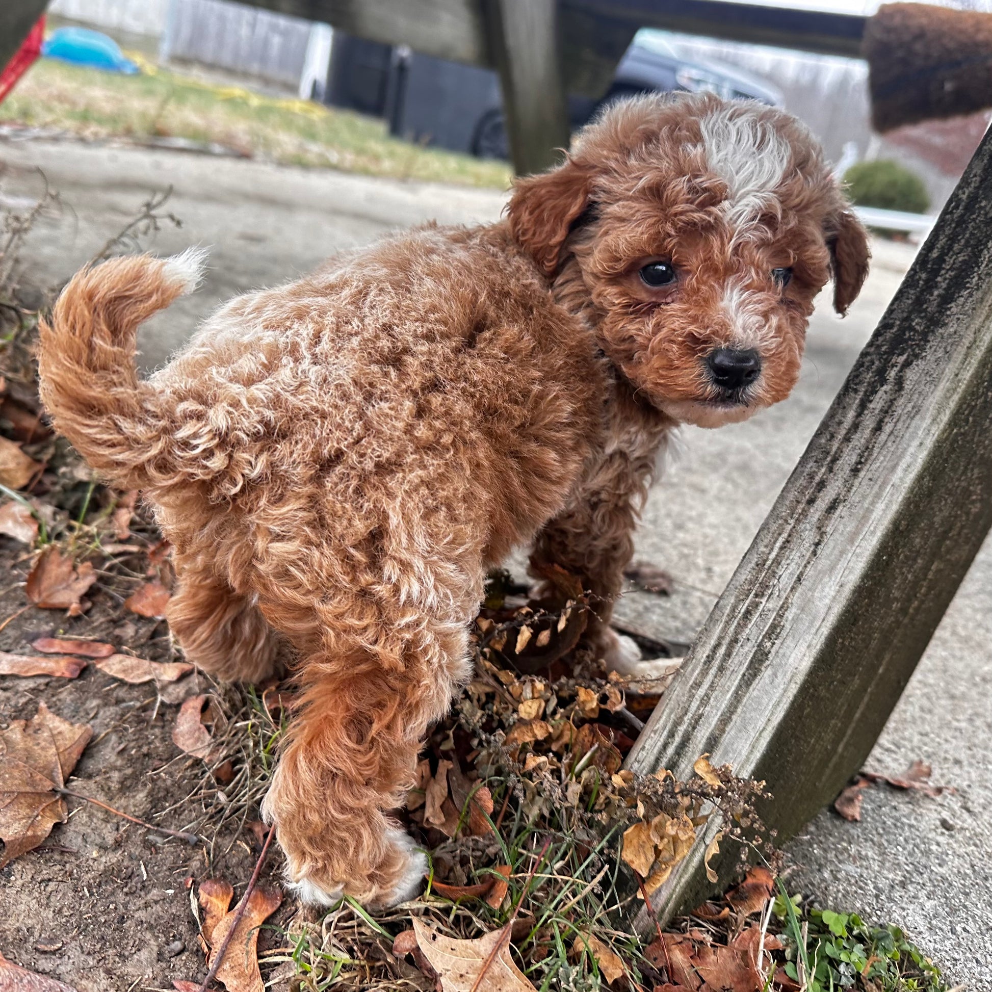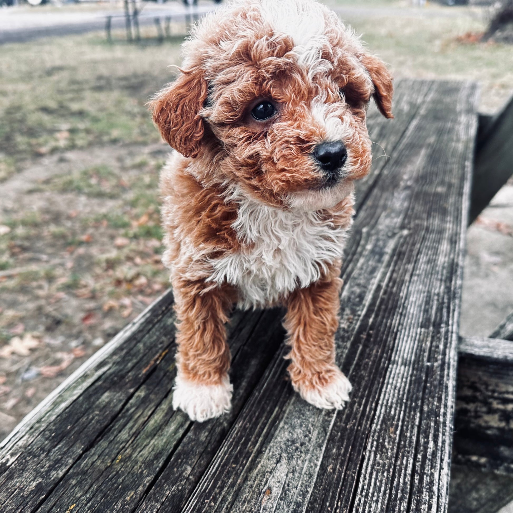 Denver is our charming male Micro Goldendoodle, featuring a rich red coat accented with beautiful white markings that give him a warm, eye-catching look. His coloring perfectly complements his bright expression and gentle personality, making him an instant favorite. Sweet, curious, and affectionate, Denver has a joyful spirit balanced by a calm and loving nature. He loves playtime and exploring his surroundings, but heβs just as happy curling up for cuddles and staying close to his people. Denver is attentive and intelligent, always eager to connect, which makes bonding with him feel effortless and natural.Β As a Micro Goldendoodle, Denver is the ideal size for cozy homes and travel. With his stunning red-and-white coloring and kind-hearted temperament, Denver is a truly special little boy ready for his forever home.