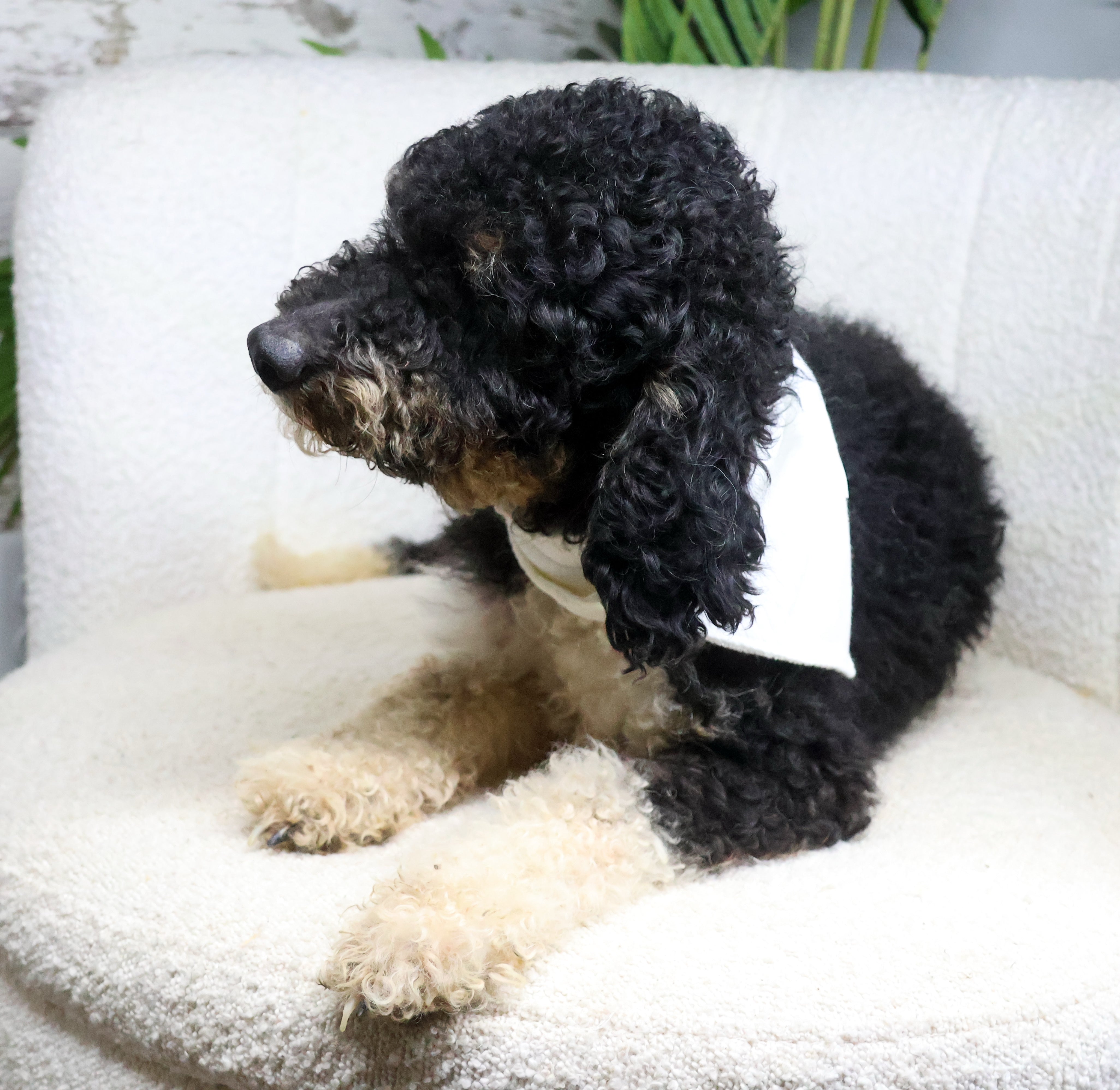 George, a handsome tri-colored Micro Bernedoodle with a striking blend of black, tan, and white in his coat. His classic markings give him a distinguished, timeless look that perfectly showcases the beauty of the breed.Β George has a friendly, affectionate personality and a naturally calm demeanor. He enjoys being around people, builds strong connections with his family, and thrives on companionship. Intelligent and observant, George is eager to learn and does well with gentle training and consistent routines.Β With his compact micro size and loving temperament, George is a wonderful companion for a variety of homes, bringing warmth, loyalty, and steady affection wherever he goes.