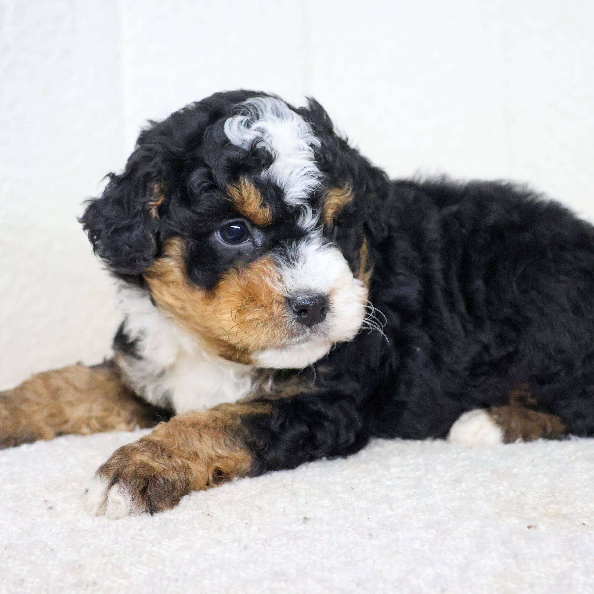 Harley is a handsome Micro Bernedoodle with a fluffy coat and a lovable, gentle personality. He is curious, affectionate, and enjoys being close to his people, whether itβs during playtime or quiet moments of cuddling. Harley has a sweet and easygoing temperament, making him a wonderful fit for families or anyone looking for a loyal, affectionate companion. Heβs full of charm and ready to bring warmth, joy, and companionship to his forever home.
