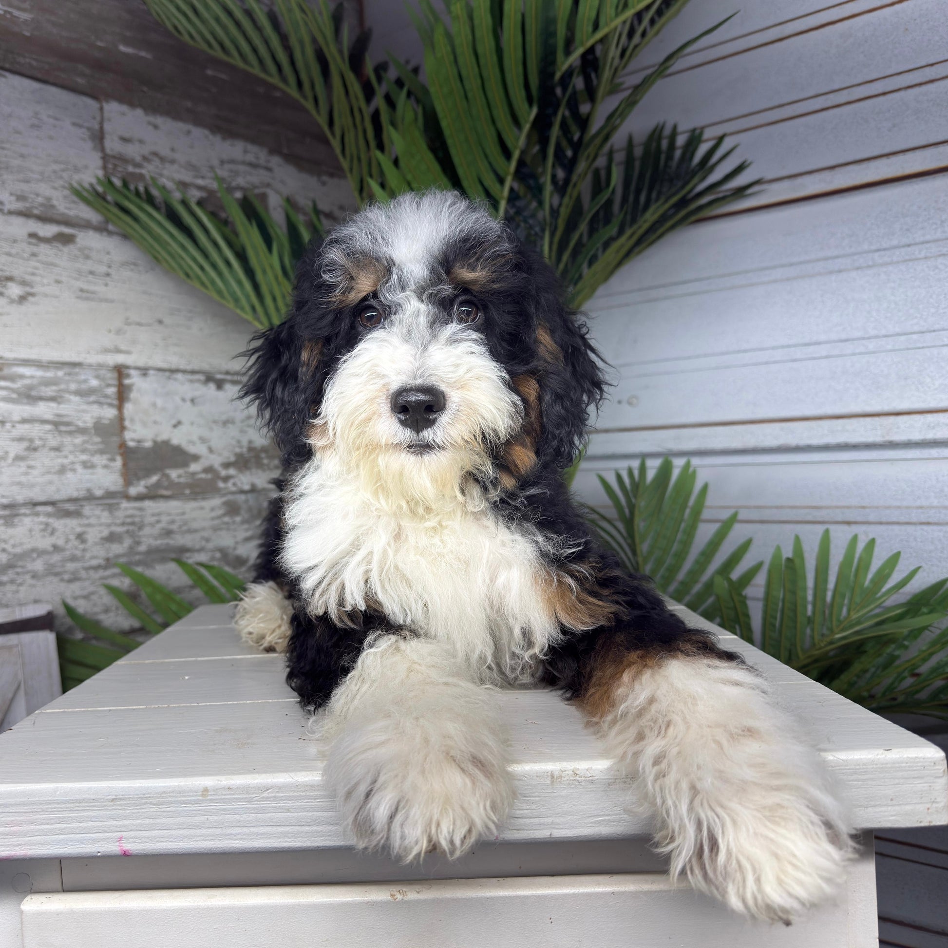 Harold is a sweet and charming Mini Bernedoodle puppy with a personality as lovable as his looks. His soft, wavy coat showcases the beautiful Bernedoodle style, making him both adorable and huggable.Β Playful and curious, Harold enjoys exploring new things and spending time with people. He has a gentle, affectionate side too, always ready to curl up for snuggles after playtime. With his intelligence and eagerness to please, Harold will be a joy to train and will grow into a loyal, devoted companion.