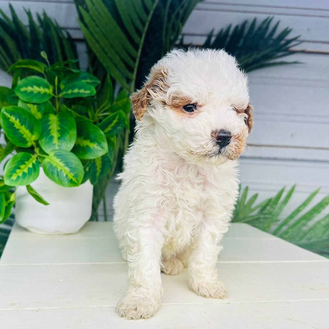 Kira is a sweet and charming Micro Goldendoodle with a soft, creamy-apricot coat and an irresistibly gentle expression that melts hearts instantly. Delicate and dainty, she has that perfect teddy-bear look paired with a warm, loving personality that makes her impossible to forget.Β Kira is affectionate, calm, and wonderfully people-oriented. She loves being close to her humans β whether that means quietly following you from room to room, curling up for cuddles, or resting peacefully in your arms after playtime. Her temperament is friendly and easygoing, making her a joy to have around both kids and adults alike.Β With her curious little nature and sweet demeanor, Kira brings the perfect balance of playfulness and calm. She is the kind of puppy who fits seamlessly into a loving home, offering companionship, comfort, and endless affection. Kira is truly a special Micro Goldendoodle β gentle, loving, and absolutely precious.