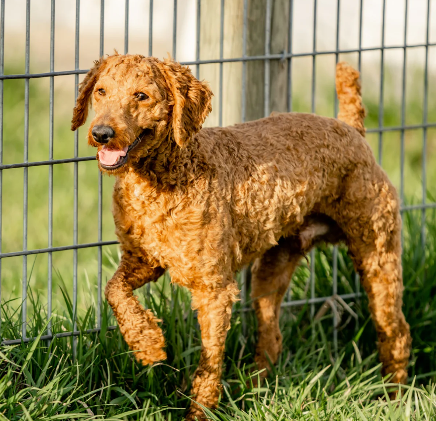 Duke, our handsome Mini Poodle papa with a rich, red coat thatβs as striking as his personality. With his refined features, intelligent eyes, and prance-like walk, Duke is the picture of elegance and charm. His vibrant red curls are not only eye-catching but also soft to the touch and non-sheddingβmaking him a fantastic sire for allergy-friendly Doodle puppies.Β Duke is more than just good looks. Heβs incredibly smart, eager to please, and has a playful yet composed demeanor. He loves engaging with people, learns commands quickly, and carries himself with a confidence thatβs never pushyβjust poised.