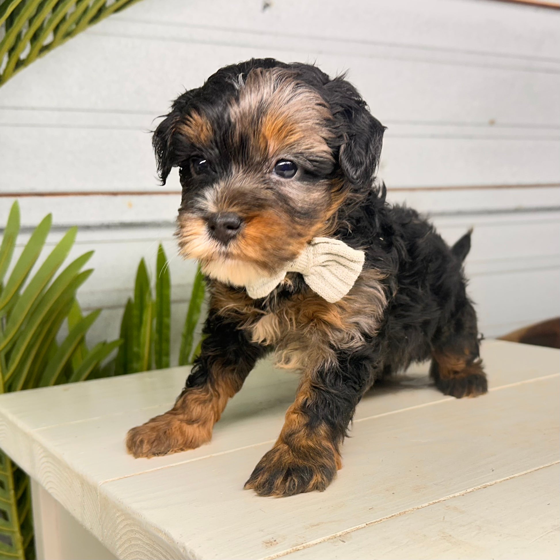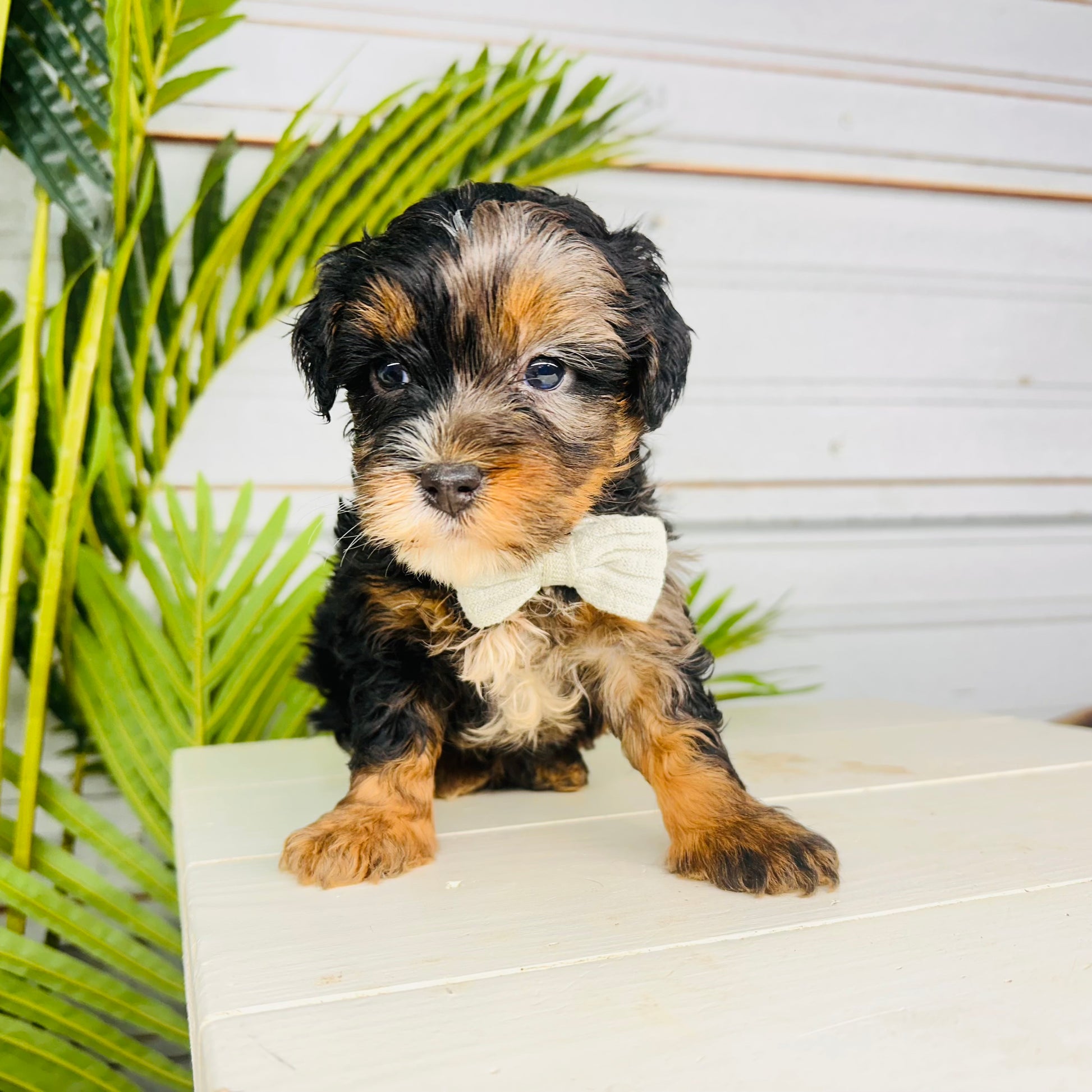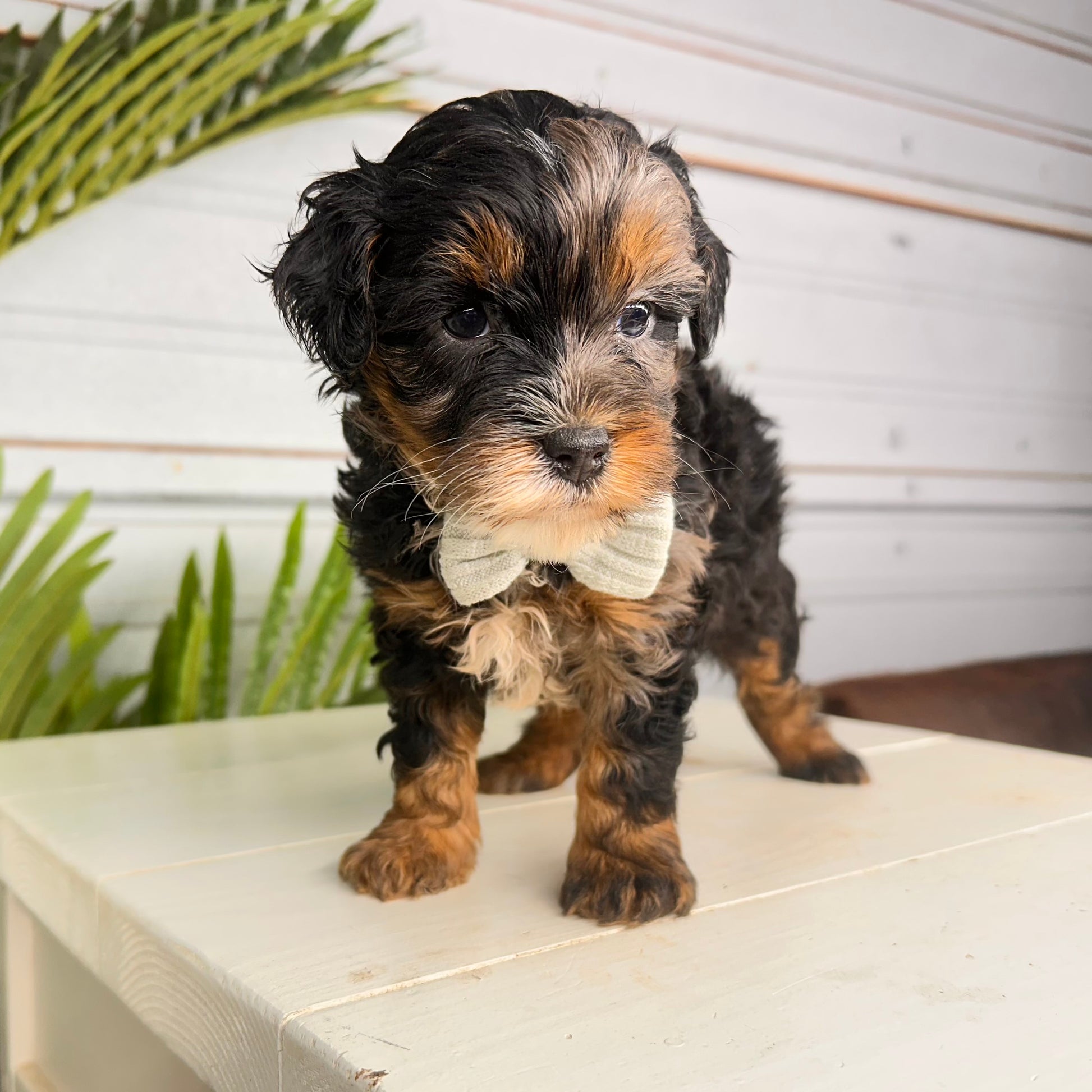 Shadow is an exceptional Micro Bernedoodle with a striking merle coat that immediately sets him apart. His soft, curly fur features a refined blend of silvery grays, deep charcoal blacks, and subtle cream tones, forming a beautifully balanced marbled pattern that is both rare and eye-catching. Beyond his stunning appearance, Shadow has a confident, playful personality paired with a loving and affectionate nature. He enjoys exploring, engaging in playtime, and cuddling close with his people, forming strong bonds with ease. With his bold coat, charming temperament, and ideal micro size, Shadow is a standout companion ready to bring joy, warmth, and lifelong companionship to his forever home.