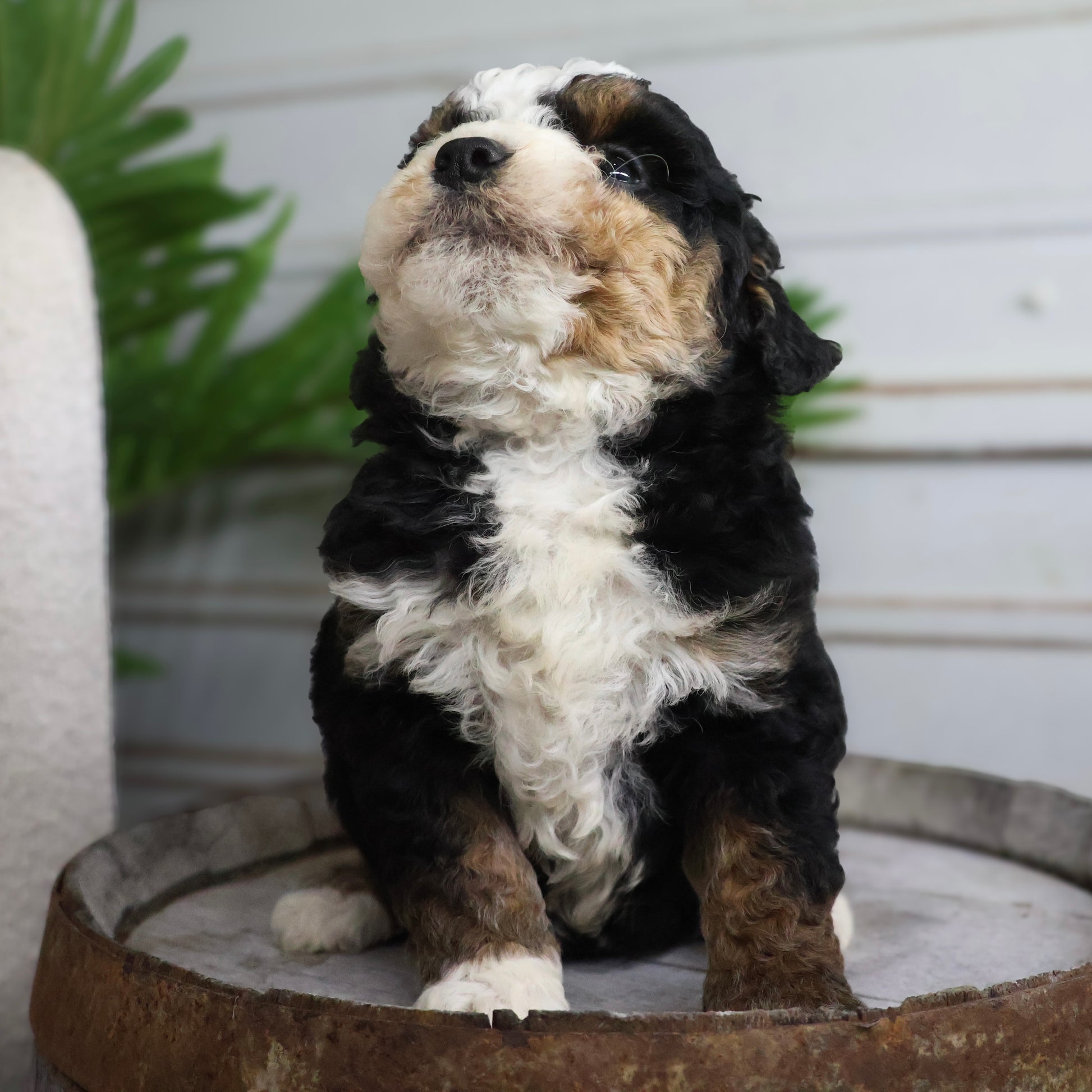 Trevor is a handsome Mini Bernedoodle papa with a classic tricolor coat that perfectly captures the breedβs signature elegance. His soft, wavy fur is a rich blend of deep black, warm rust, and crisp white, giving him a distinguished yet irresistibly cuddly appearance. Trevor has a playful, friendly spirit and a gentle nature that makes him loved by everyone he meets. Heβs intelligent, affectionate, and carries himself with an easygoing charm, whether heβs romping around the yard or relaxing by your side. As a papa, Trevor passes down not only his stunning good looks but also his sweet temperament and loving personality to his puppies.