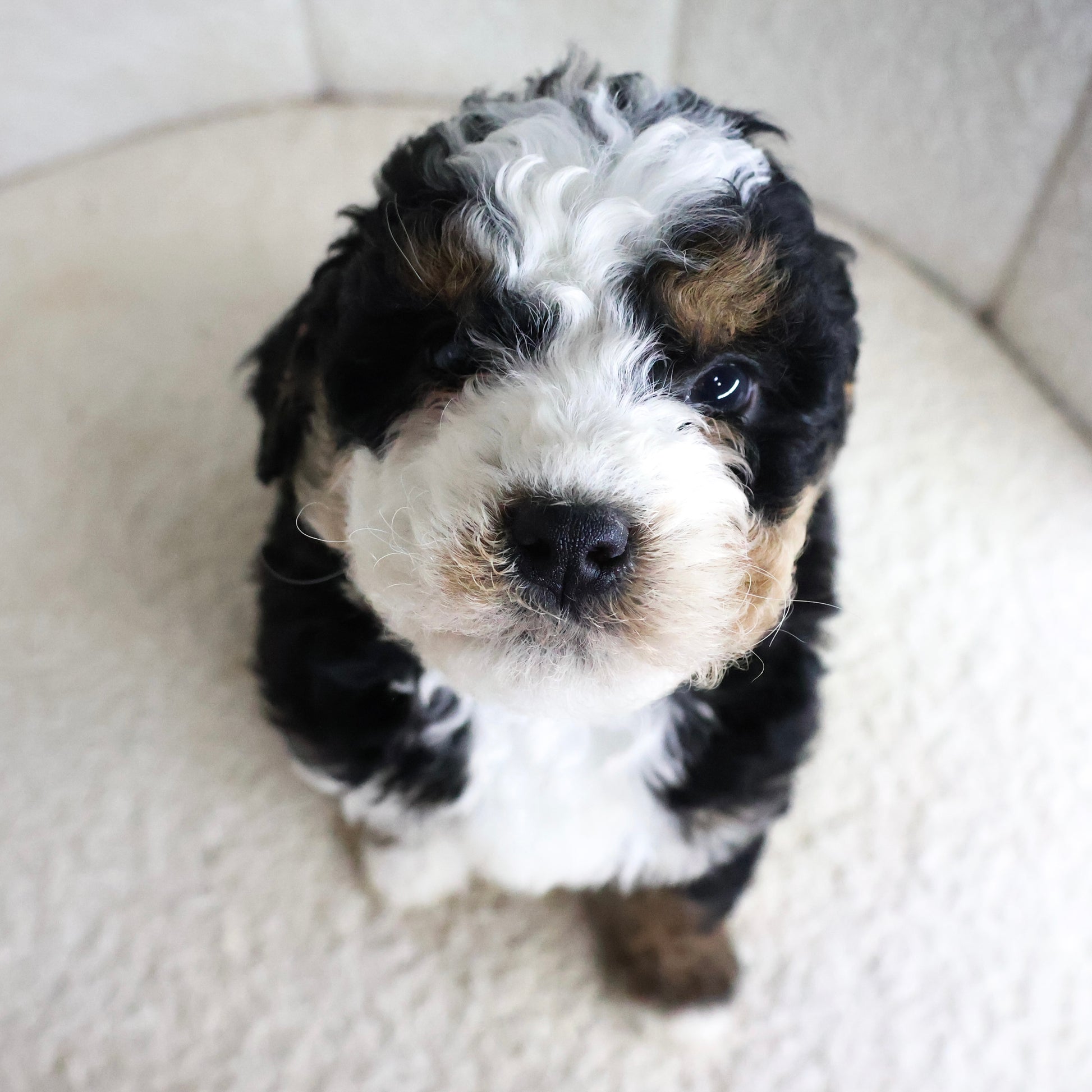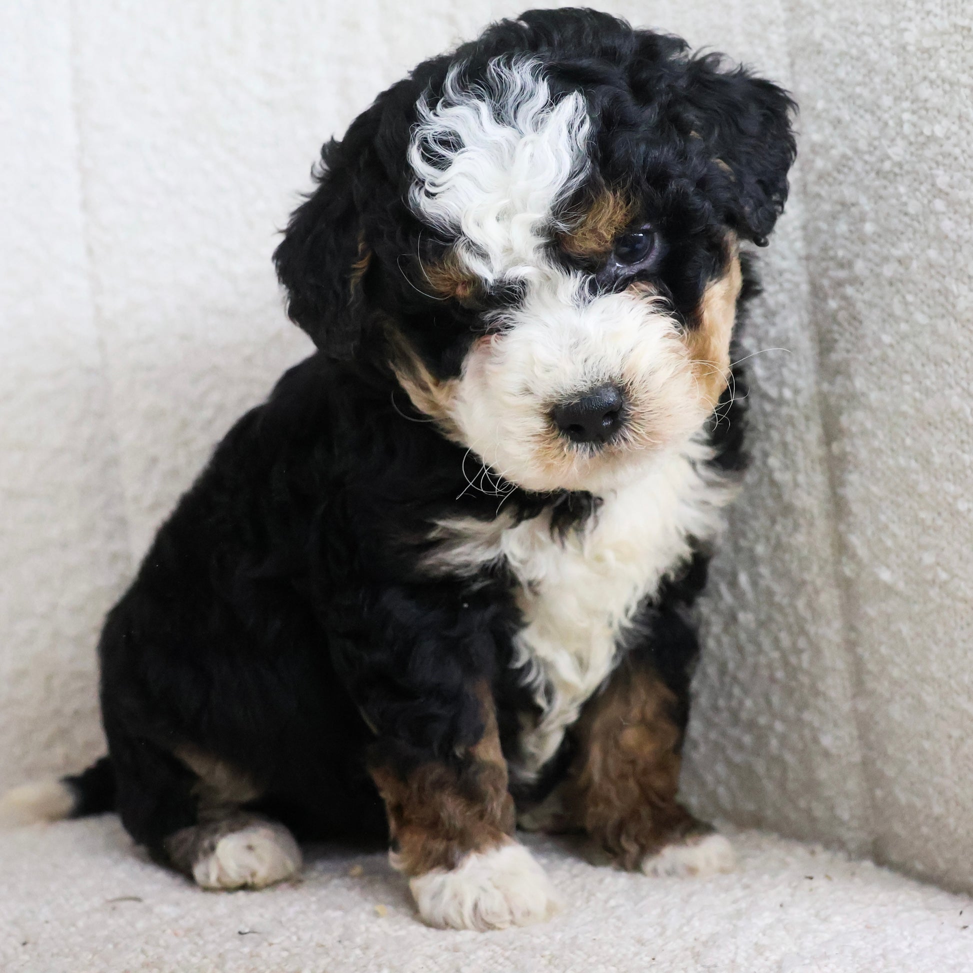 Sparky is an adorable Micro Bernedoodle with a striking tri-color coat and the sweetest personality. He is playful, curious, and full of charm, always ready to explore or cuddle up for some affection. Sparky has a gentle temperament, making him a wonderful companion for families, couples, or anyone looking for a loyal and loving pup. He enjoys playtime, human attention, and relaxing by your side, and heβs sure to bring joy and laughter to his new home.
