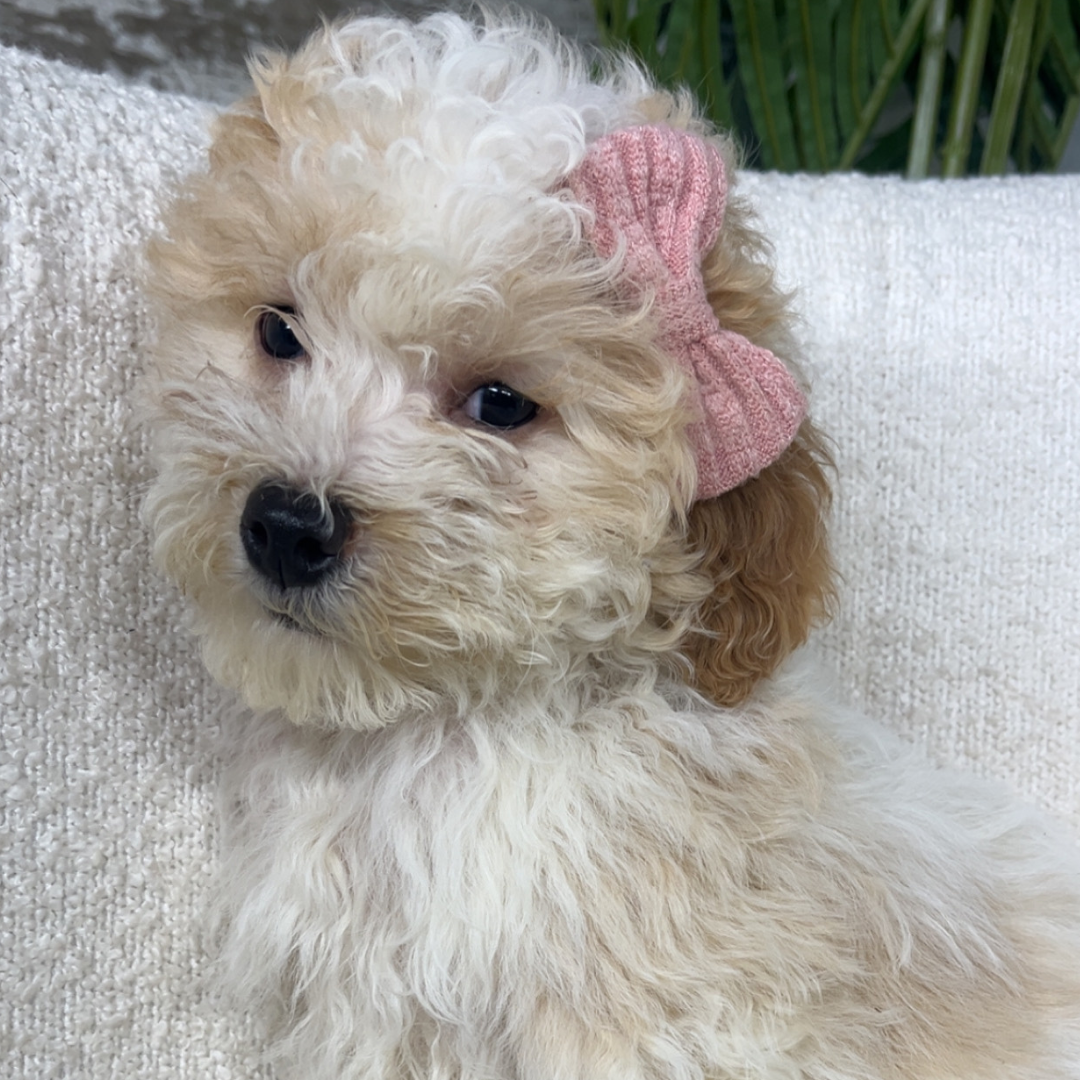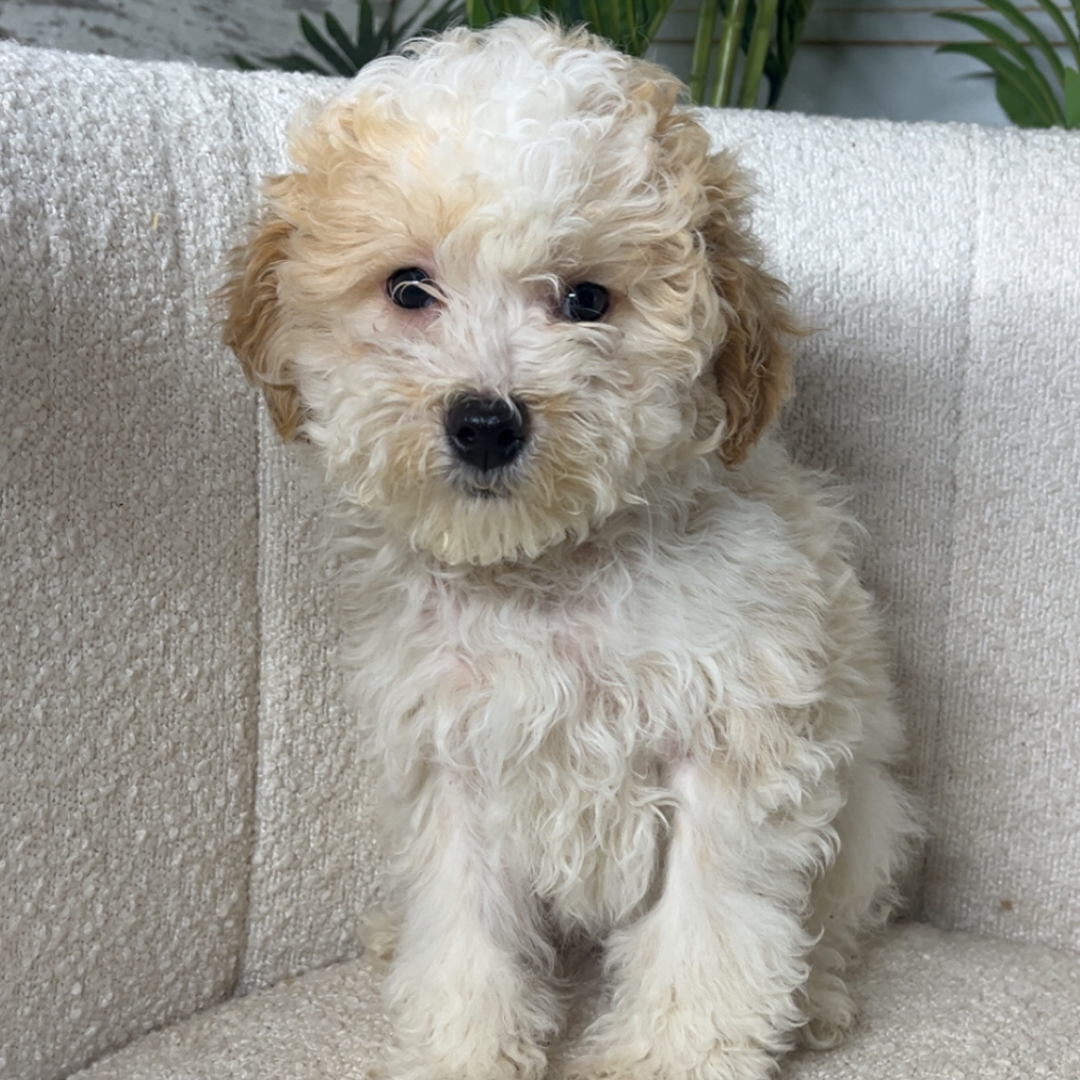 Mary Kay is a beautiful Mini Goldendoodle with a sweet, affectionate personality that shines in every interaction. Her soft, wavy coat and gentle eyes make her absolutely irresistible, while her calm and nurturing temperament shows why she’s such a wonderful mama. She loves spending time with her family and pups, always offering care, comfort, and guidance to her little ones. Mary Kay is playful yet composed, making her a joy to be around and a trusted companion for anyone lucky enough to meet her.